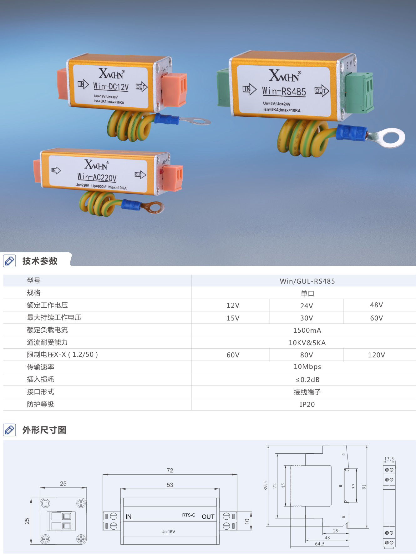 Win/GUL-RS485单相电源信号防雷器